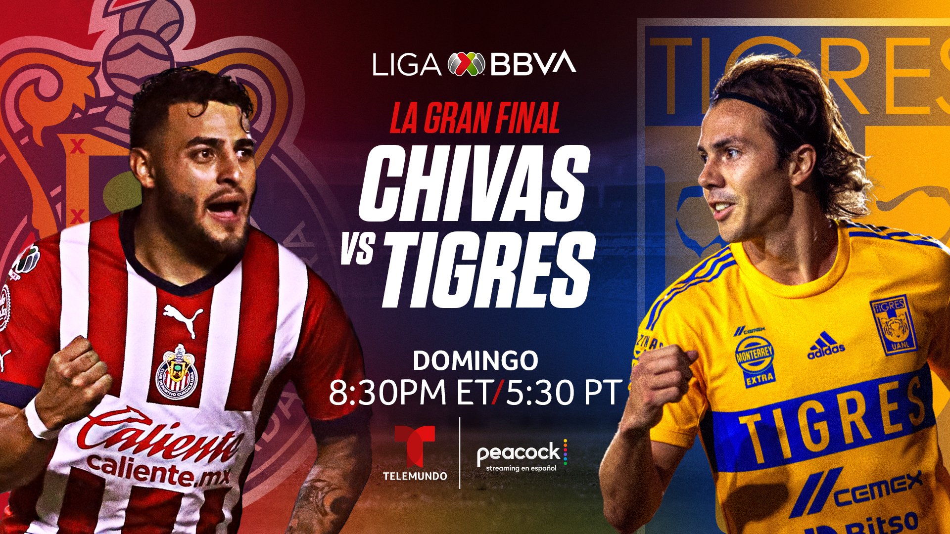 Chivas se prepara para enfrentarse a Tigres una vez más en la final de la LIGA MX después de llevarse a casa el trofeo hace seis años en 2017 con una victoria 2-1 sobre Tigres. El equipo de comentaristas de Telemundo capturará toda la acción en el lugar con el equipo de anuncios en el lugar y la programación que se origina desde Guadalajara. Andrés Cantor, ganador de siete premios Emmy, estará a cargo de la narración junto al veterano de las Chivas de Guadalajara, Manuel Sol, y la leyenda del fútbol mexicano Carlos Hermosillo como analistas, y Arantza Fernández como reportera de campo.