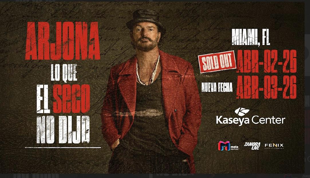 Miami no se rinde con una sola función. Ricardo Arjona, el cantautor guatemalteco que ha convertido cada una de sus giras en un fenómeno cultural, agotó en apenas 30 minutos las entradas para su concierto del 2 de abril de 2026 en el Kaseya Center. La respuesta fue tan abrumadora que la producción confirmó una segunda fecha para el 3 de abril, dándole una nueva oportunidad a quienes se quedaron fuera de la primera venta.